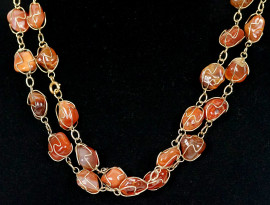 Lotto di 2 collane in metallo dorato e pietre multicolore