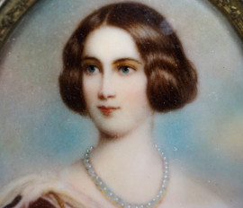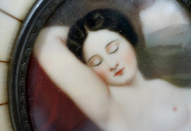 Lotto di 2 miniature rappresentati: Marie, principessa ereditaria di Baviera, da Joseph Karl Stieler; La Venere dormiente, da Giorgione, prima metà XX secolo, misura max cm 5,3x4,5, entro cornice