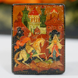 Lotto di cinque scatoline ed un piattino in legno laccato, manifattura russa, XX secolo, misure max cm 28,5x20x3,5 circa