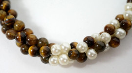 Lotto di due collane in occhio di tigre e perline e granati, lunghezza max cm 49,5
