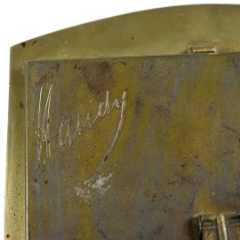 Lotto di due cornici portafotografie in metallo dorato, XX secolo, misure max cm 27x16
