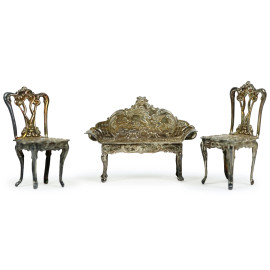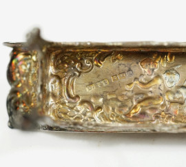 Lotto di microfusioni in argento inglese ed italiano, diametro max cm 9,5, peso gr. 135 circa, (difetti)