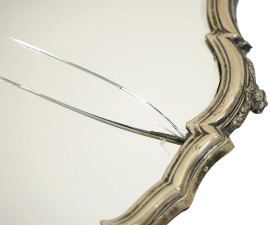 Lotto di tre vassoi in argento con piano a specchio, misure max cm 44x31,5 (difetti, parti rotte)
