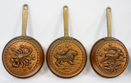 Lotto di utensili in rame, XX secolo, h max cm 29, (difetti)
