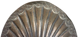 Lucerna in metallo argentato e sbalzato, XIX secolo, h cm 35