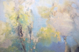 Luci nella faggeta di Oriolo Romano, olio su tela, cm 40,5 x 50, firmato Aldo Amaduzzi, entro cornice