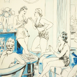 Luigi Bompard (Bologna, 1879 – Roma, 1953), Confidenze tra modelle, tecnica mista su carta, cm 35,5x25,5