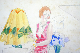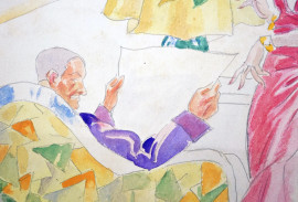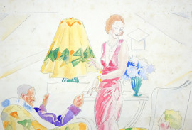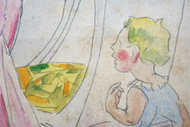 Luigi Bompard (Bologna, 1879 – Roma, 1953), Mamma…vieni a giocare con me?, tecnica mista su carta, cm 29,5x24,5