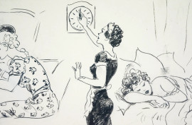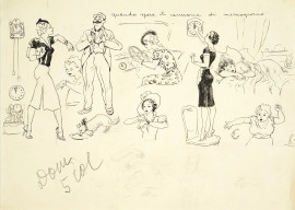 Luigi Bompard (Bologna, 1879 – Roma, 1953), Quando spara il cannone di mezzogiorno, china su carta, cm 24x34
