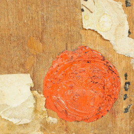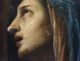 Madonna in preghiera, olio su tavola, cm 17,5x12,9, recante iscrizione e timbri in ceralacca a tergo