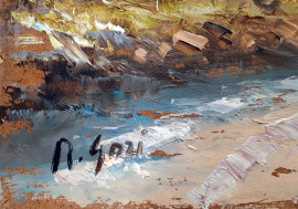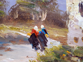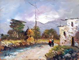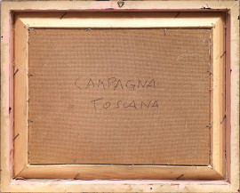 Maestro toscano post-macchiaiolo del Novecento, Paesaggio rurale con viandanti nella campagna toscana, olio su faesite, cm 30x40, firmato, con elegante cornice