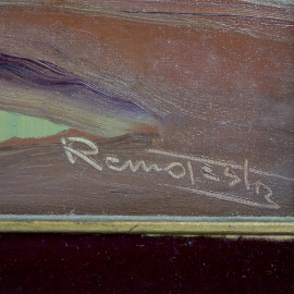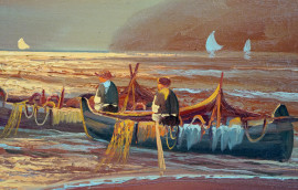 Marina con pescatori, olio su tela, firmato, cm 50x70, entro cornice