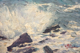 Marina, olio su cartone telato, cm 30x41, firmato, entro cornice