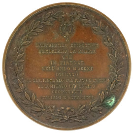 Medaglia in bronzo "Conforta la memoria mia che giace", realizzata nel 1876 a ricordo di Bartolomeo Cristofori, diametro cm 5,5, (difetti)