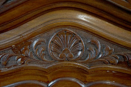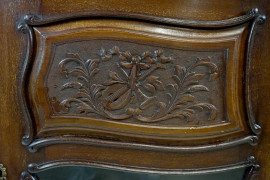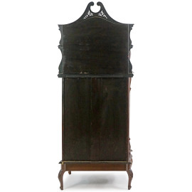 Mobile in noce, XX secolo, alzata con cimasa scolpita e specchio, parte inferiore ad uno sportello, gambe mosse, cm h 153x63x39, (difetti)