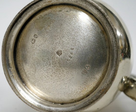 Mug in argento, Londra, fine del XIX secolo, cm 12,5, peso gr. 284, (graffi)