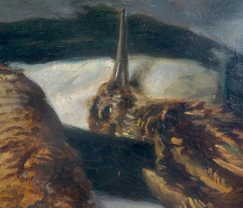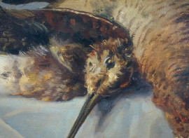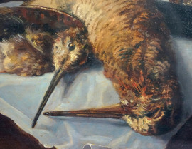 Natura morta con cacciagione, olio su tela, firmato in alto a sinistra A. Schwicker, cm 30,5x40,5, entro cornice