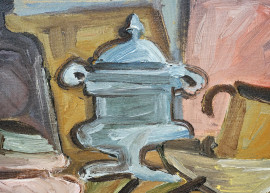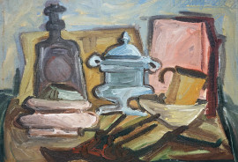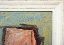 Natura morta, olio su cartone telato, XX secolo, firmato in alto a destra, cm 32,5x38,5, entro cornice