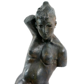 Nudo femminile, scultura in terracotta, firmata, XX secolo, h cm 77,5