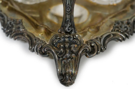 Oliera da tavolo in Sheffield con ampolle in vetro, cm h 26 (mancanze)
