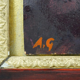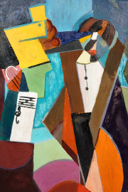Omaggio a Albert Gleizes, Ritratto di Igor' Stravinski, olio su cartoncino, siglato, cm 33,8x21,5, entro cornice
