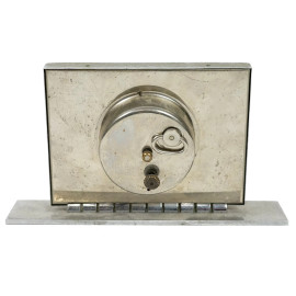 Orologio da tavolo in metallo argentato, marchio Greiff, 1940 circa, cm h 9,5x17