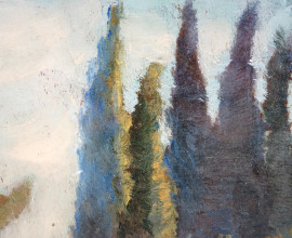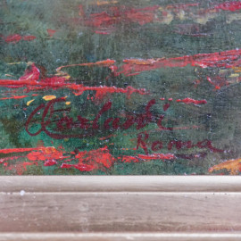 Paesaggio con alberi, olio su cartone, firmato, cm 22x21, entro cornice