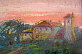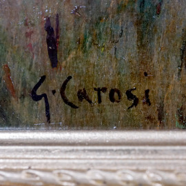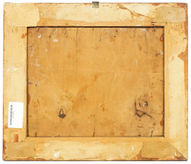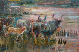 Paesaggio con butteri, olio su compensato, firmato, cm 24,5x30, entro cornice