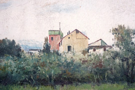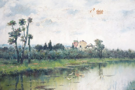 Paesaggio fluviale, olio su tela, firmato in basso a destra, cm 35,5x57, entro cornice (cadute di colore)