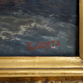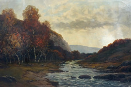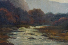 Paesaggio fluviale, olio su tela, XX secolo, firmato, cm 54x82, entro cornice