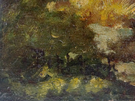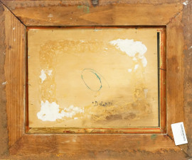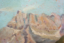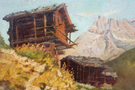Paesaggio montano con baita, olio su compensato, firmato, cm 26x35, entro cornice