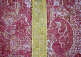 Pianeta in damasco bordeaux con ricamo dorato, XX secolo