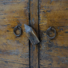 Piattaia in legno dolce a due piani e due sportelli, XVIII secolo, cm h 103,5x23x94 (difetti)