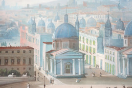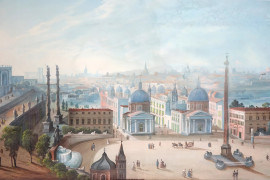 Piazza del Popolo, tempera su carta, fine XIX secolo, cm 53x72, entro cornice