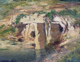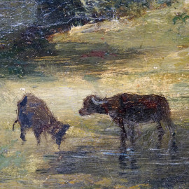 Pittore del XIX secolo, Paesaggio con armento, olio su tavola, cm 31,5x45, entro cornice