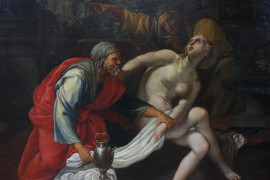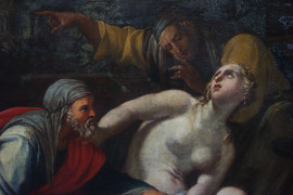 Pittore del XVII-XVIII secolo, Susanna e i vecchioni, olio su tela, cm 106x137,5, entro cornice