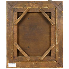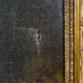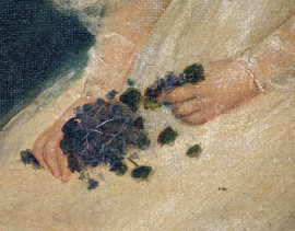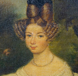 Pittore francese del XIX secolo, Gentildonna con un mazzolino di fiori entro un paesaggio, olio su tela, cm 40,5x32, entro cornice (difetti sulla tela)