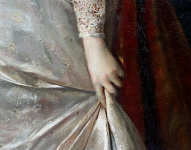 Pittore italiano, fine XIX - inizio XX secolo, Ritratto di nobildonna con ventaglio, olio su tela, cm 76x40,5, entro cornice