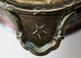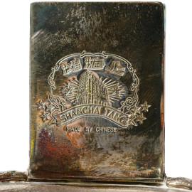 Posacenere in metallo argentanto, Cina, XX secolo, diametro cm 12 (difetti)