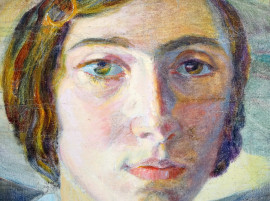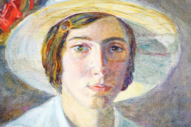 Ritratto di donna con cappello, olio su tela, inizio XX secolo, cm 67,7x53,7