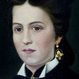 Ritratto di donna, olio su tela, cm 68x53, entro cornice di inizi XX secolo.