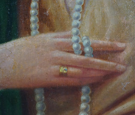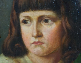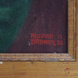 Ritratto di madre con figlia, olio su tela, firmato e datato Richard Brenner 1922, cm 101x85,5, entro cornice