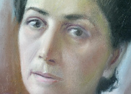 Ritratto di signora, pastello su carta, cm 42x30, firmato, entro cornice