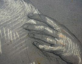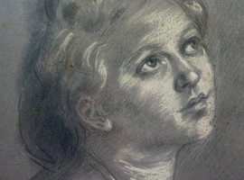 Ritratto femminile, disegno a carboncino e biacca su carta, cm 30x24, firmato, entro cornice