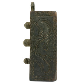 Scatola africana in legno ebanizzato e intagliato a motivi vegetali, cm h12,5x28,5x8,5