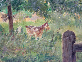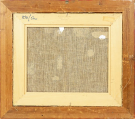 Scorcio boschivo con sentiero, olio su tela, cm 38,5x45, entro corncie