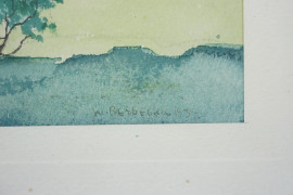 Scorcio di parco, acquerello su carta, firmato e datato, cm 22x17,5, entro cornice