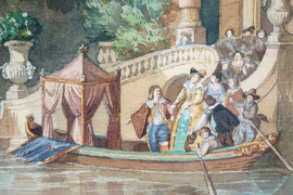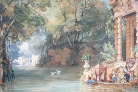 Scorcio di parco con laghetto, acquerello su carta, XIX secolo, cm 17,5x24,5, entro cornice