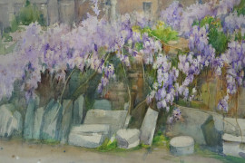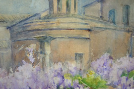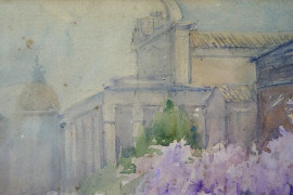 Scorcio di Roma, acquerello su carta, cm 35x50, firmato, entro cornice