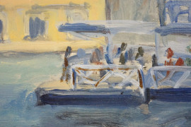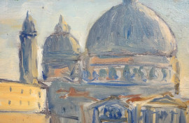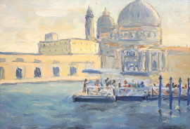 Scorcio di Venezia, olio su compensato, cm 24,5x35, firmato a tergo, entro cornice